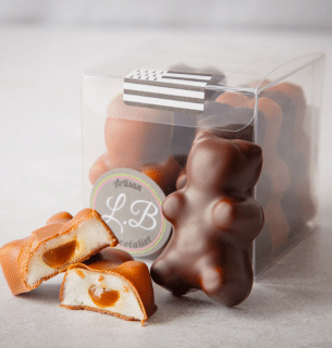 Lorsque j’ai créé mon enseigne LB Chocolatier, j’ai voulu proposer un peu plus que du chocolat. Je voulais également retrouver les douceurs de mon enfance et les sucreries que je partageais avec mes amis.